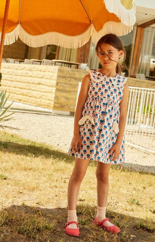 Hello Simone Karinette Girls Cotton Dress Pomponette Blue