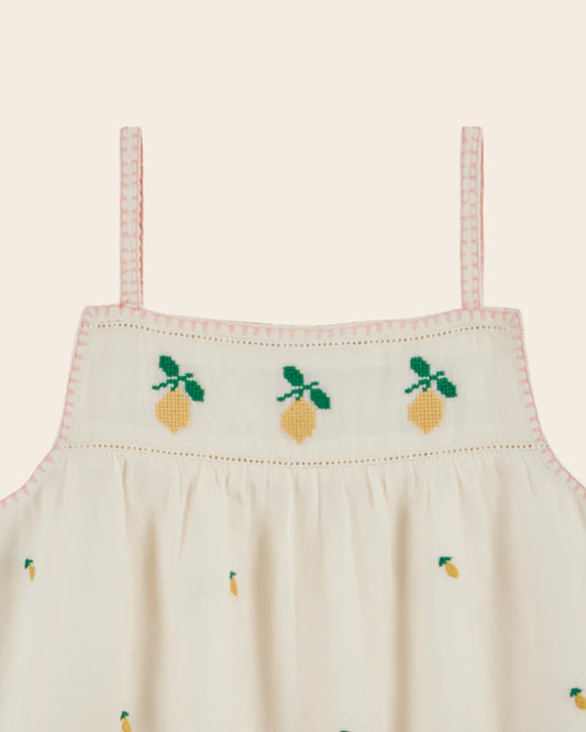 Emile & Ida Lemons Embroidered Strap Top Creme