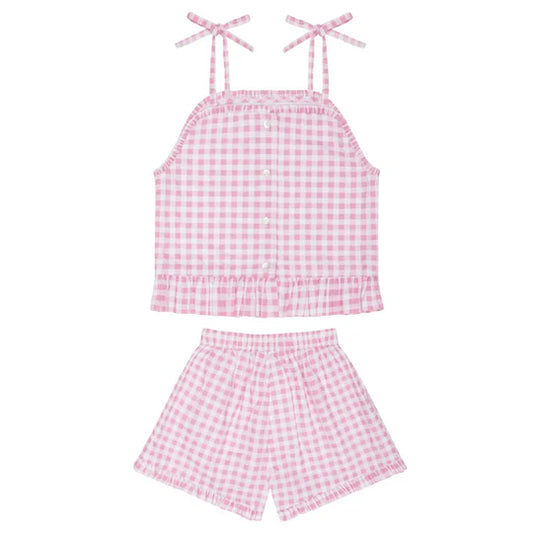 Minnow Girls Blush Gingham Tie Tank and Short Set