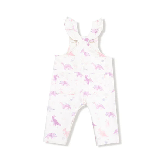 Angel Dear Front Placket Ruffle Overall Soft Dinos - Purple