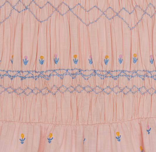 Stella McCartney Kids Girl LS Canvas Dress With Flowers and Smocking Pink