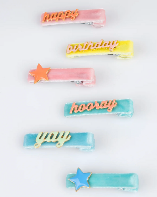 Meri Meri Happy Birthday Enamel Hair Clips - Set of 6