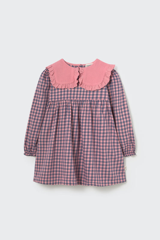 My Little Cozmo Gingham Flannel Dress Rose Tea