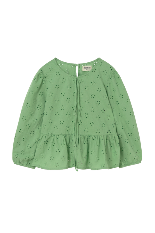 Cozmo Alma Swiss Embroidery Cotton Blouse Green