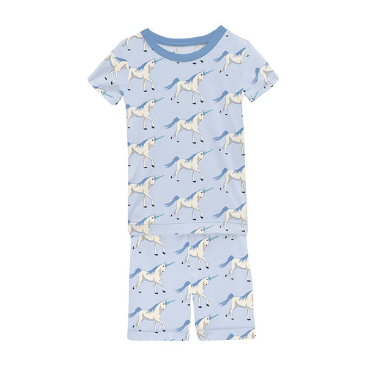 Kickee Short Sleeve Pajama Set with Shorts in Dew Prancing Unicorn