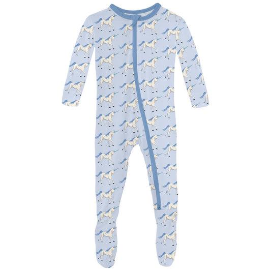 Kickee Print Footie with 2 Way Zipper in Dew Prancing Unicorn