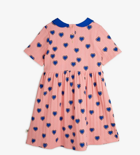 Mini Rodini Outlined Hearts Short Sleeve Dress - Pink