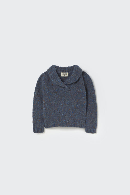 My Little Cozmo Tweed Tricot Collar Sweater Blue