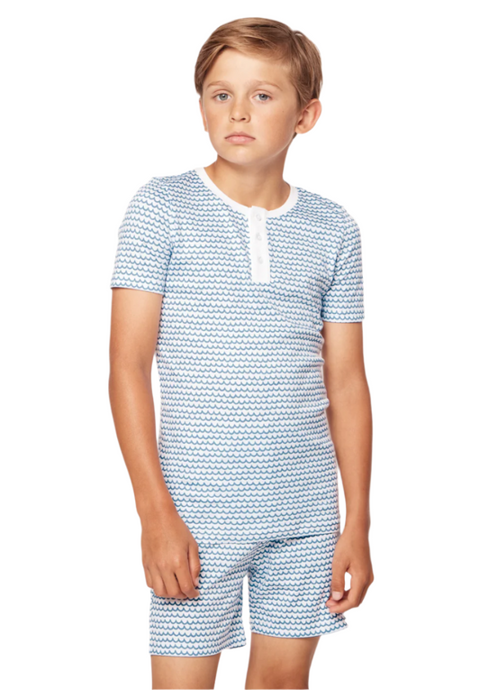 Kickee Pants Short Sleeve Henley Pajama Set Dew with Latte