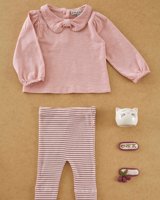 Emile Et Ida Pink Organic Cotton Bow-neck T-shirt