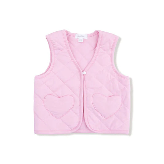 Angel Dear Quilted Vest with Heart Pocket Romance Rose