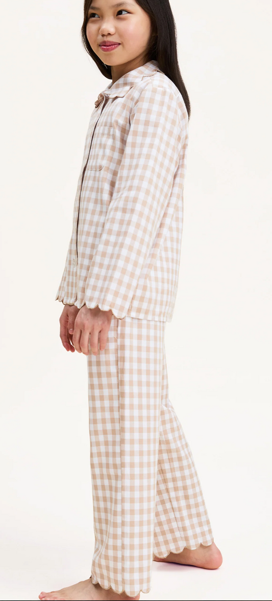 Petite Plume Kid's Twill Colette Pajama Set - Camel Gingham