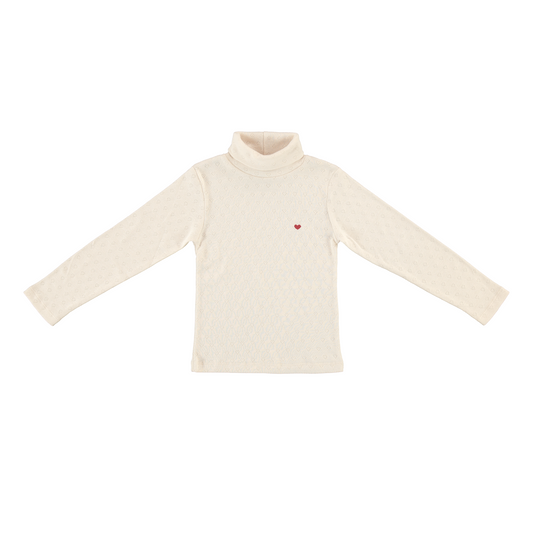 Bebe Organic Heart Turtleneck Natural Red Heart Pointelle
