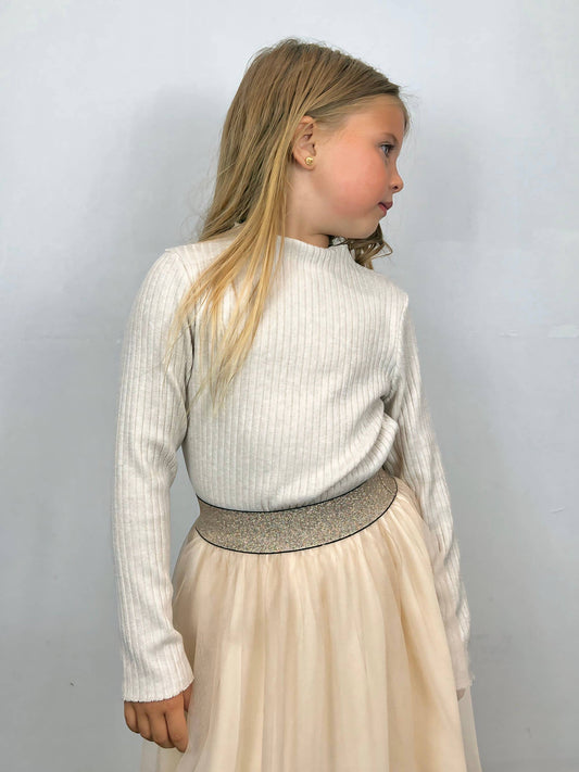 MINI MIGNON PARIS - Soft ribbed sweater for girls: Beige