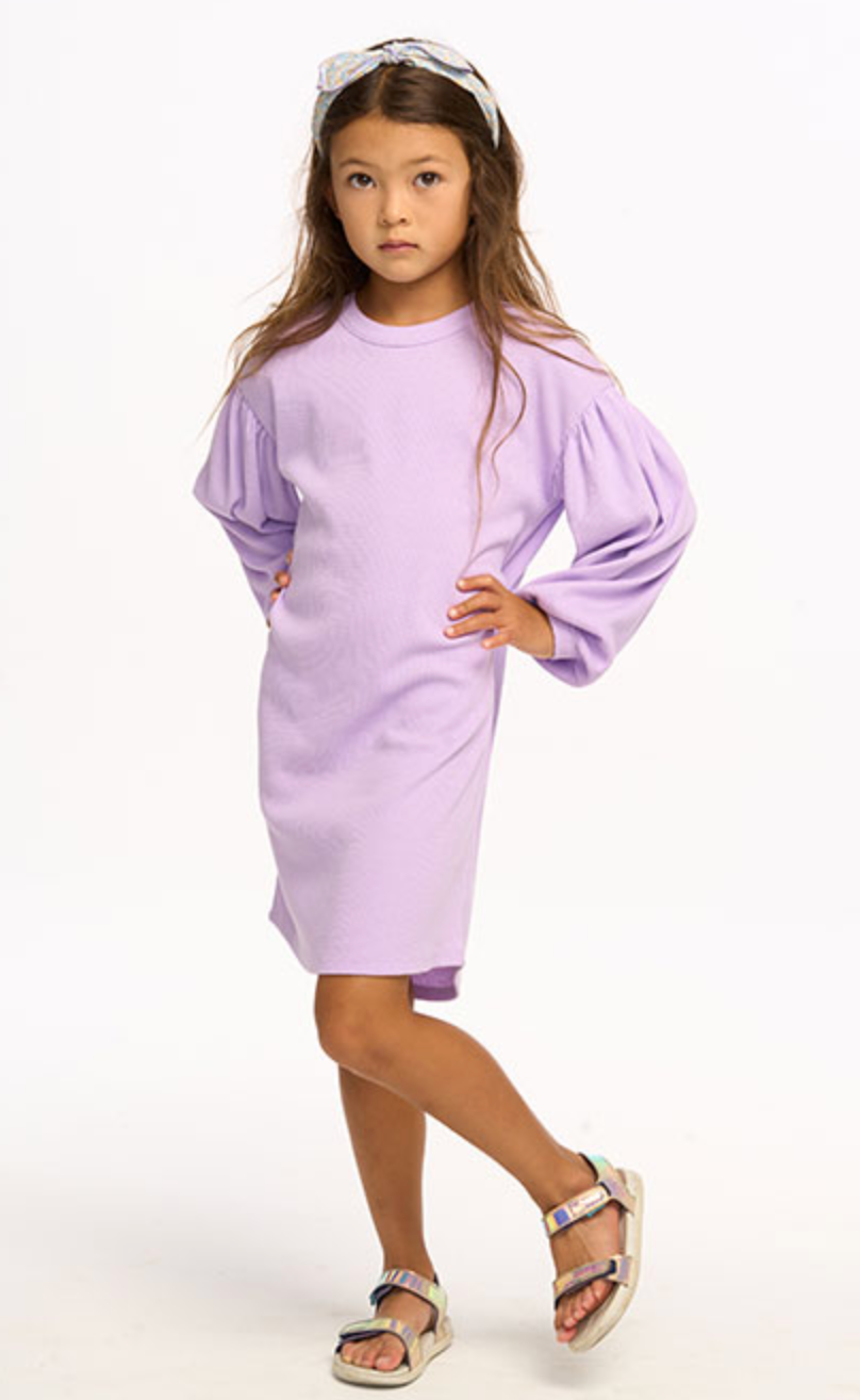 Every day is dress day in our purple Girl's Recycled Vintage Rib Riley Long Sleeve Dress. Crafted in a crazy-cozy rib and detailed with adorable dropped shoulders and gathering at the sleeves for off-duty ease.