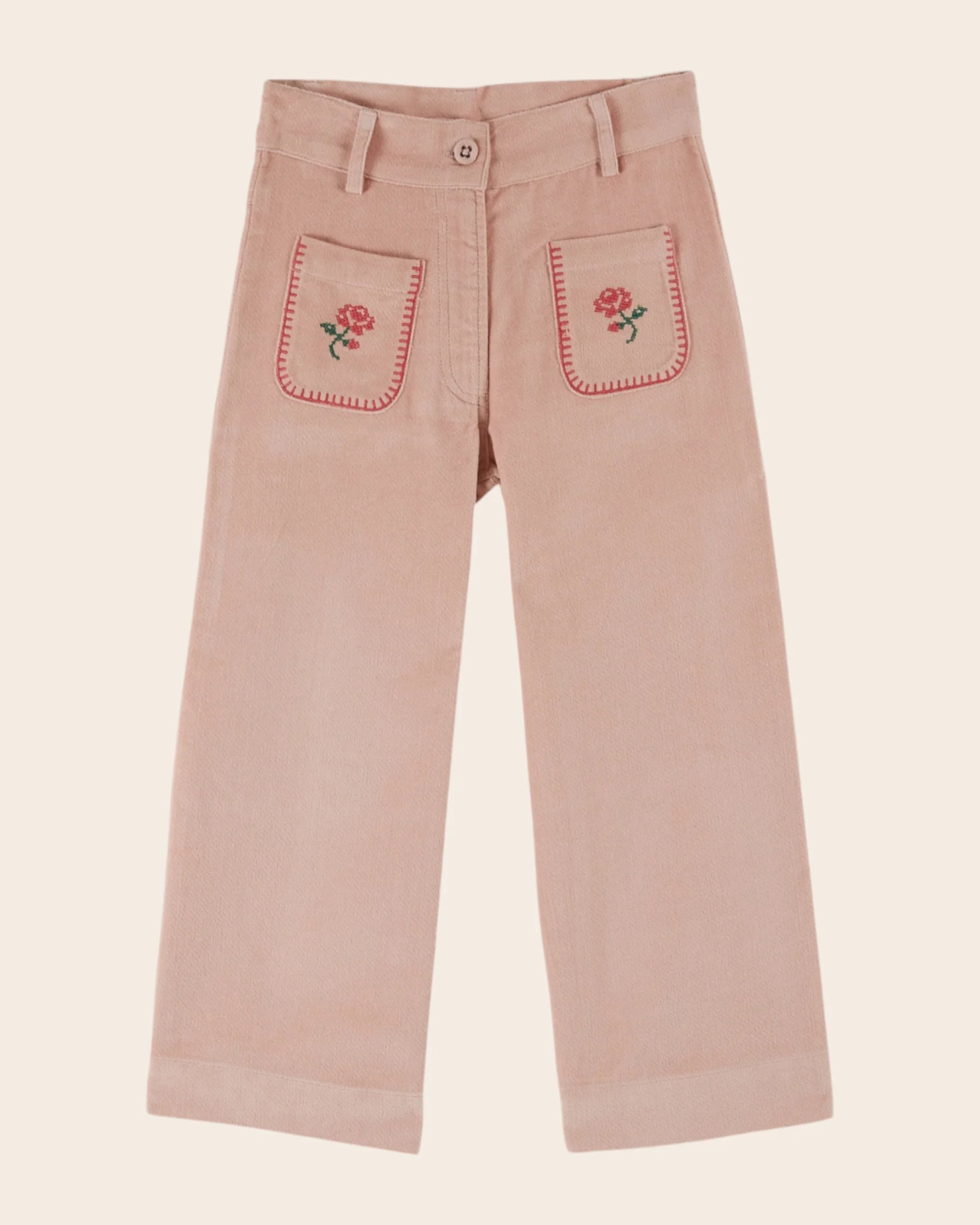 Emile Et Ida Pink Velvet Cross-Stitch Pants