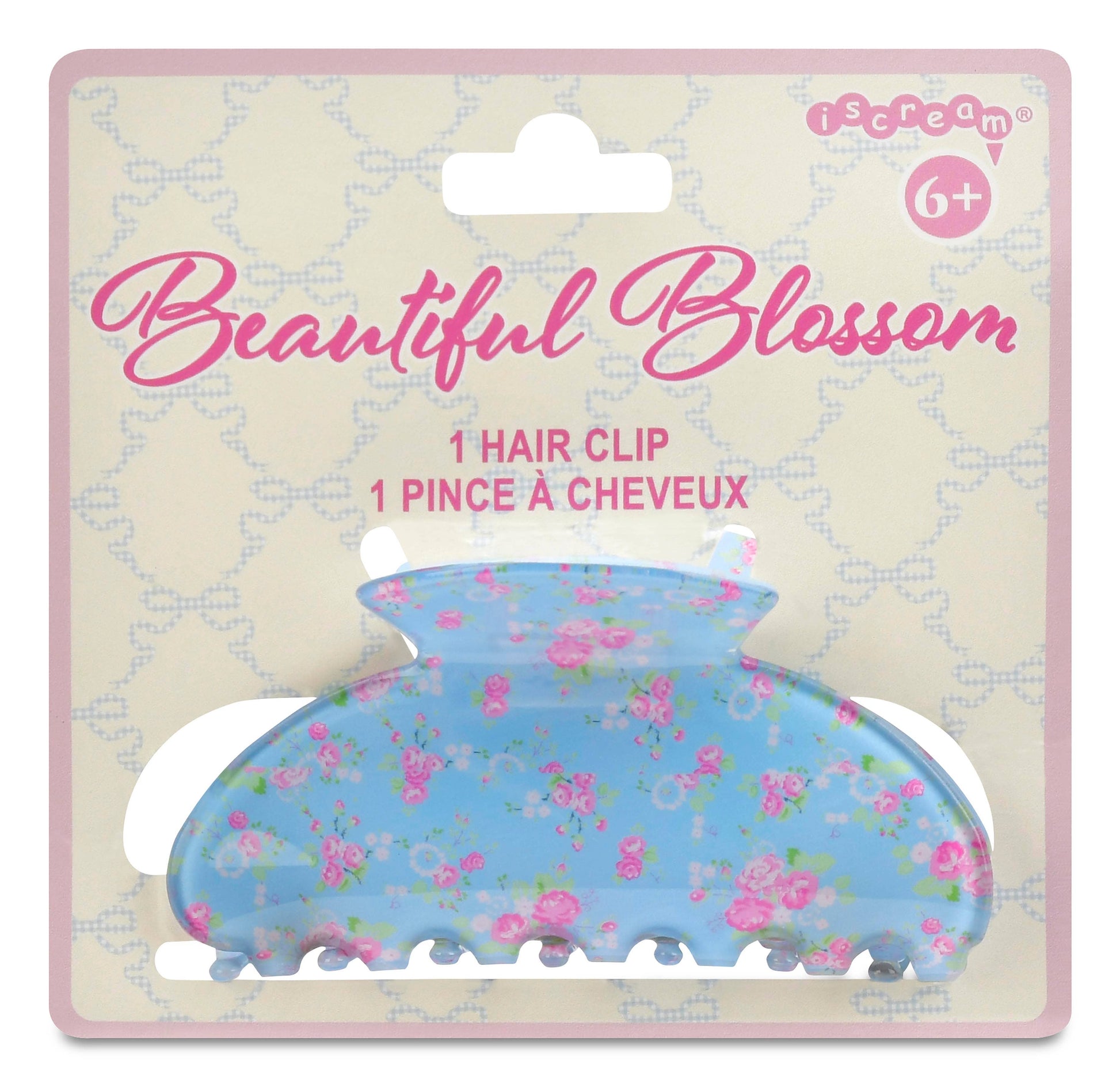 Beautiful Blossom Blue Hair Clip by Iscream. Decorative hair clip. Packaged on a peggable blister card 4 1/2" w x 4" h