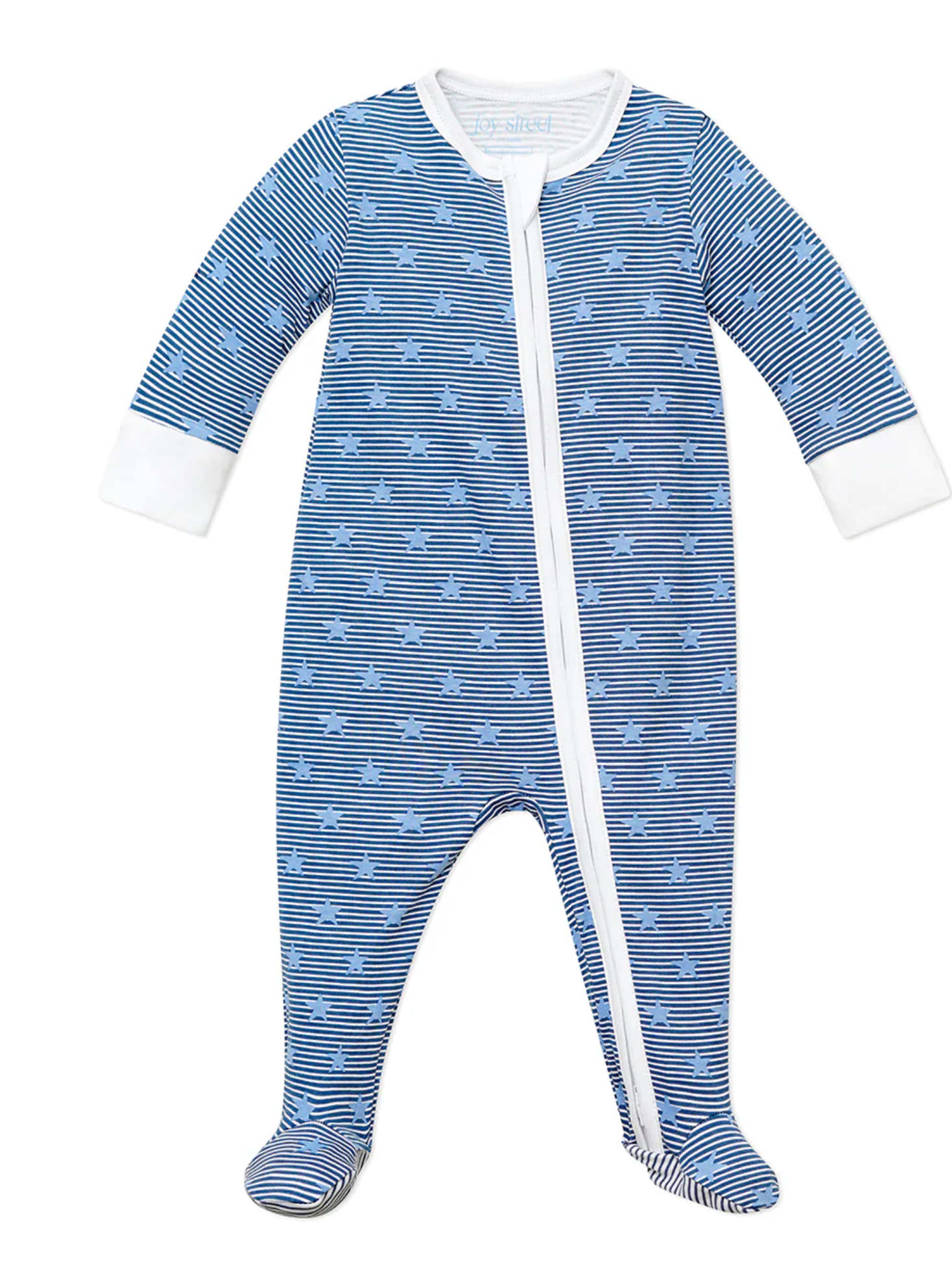 The navy and white stripe you know and love—with a little extra shine. Eliza’s hand-drawn stars and signature stripes come together in a playful print that’s bound to become a favorite in your little one’s closet. Perfect for summer celebrations—or honestly, any day in our opinion!