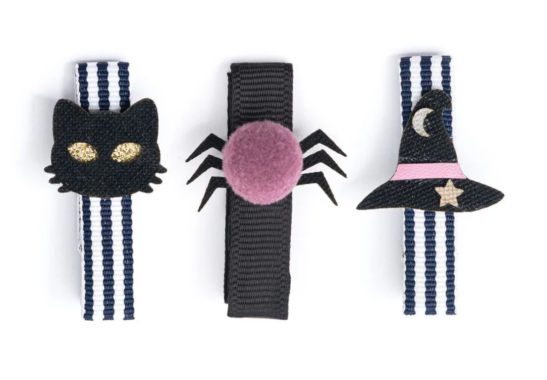 Add a dash of Halloween fun to your little one’s outfit with these Cat, Spider and Witch Hat Fabric Hair Clips for babies and toddlers. Soft and lightweight, they’re gentle on delicate hair while bringing a playful spooky charm. Perfect for festive occasions or just a cute everyday accessory!