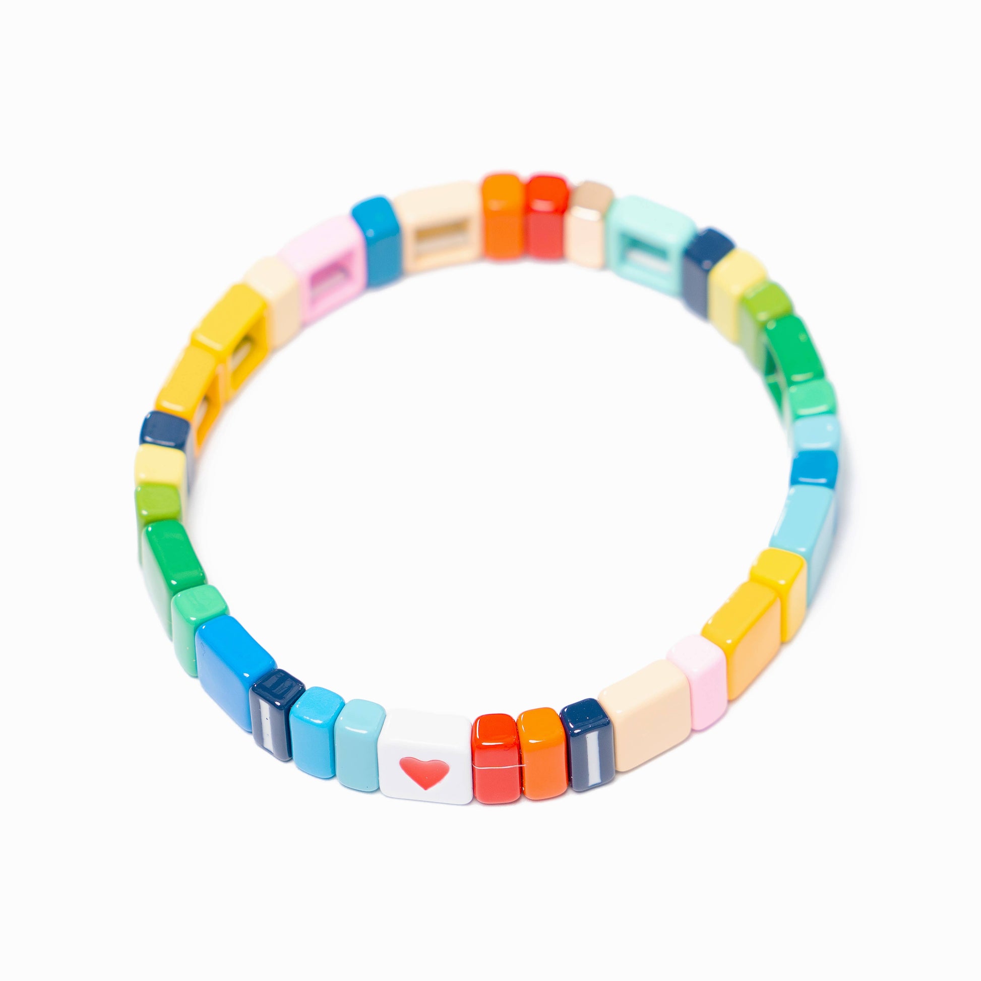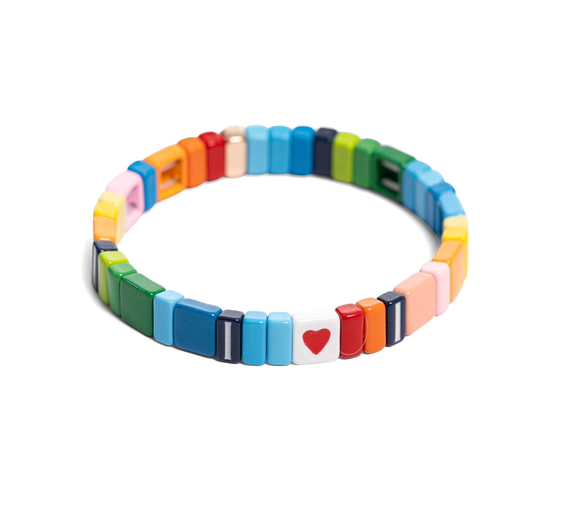 I Heart You is a great addition to your bracelet collection. The tiles are strung on an elastic cord for extra comfort and ease while taking it on and off. Wear individually or add to your own stack. Makes the perfect Gift!