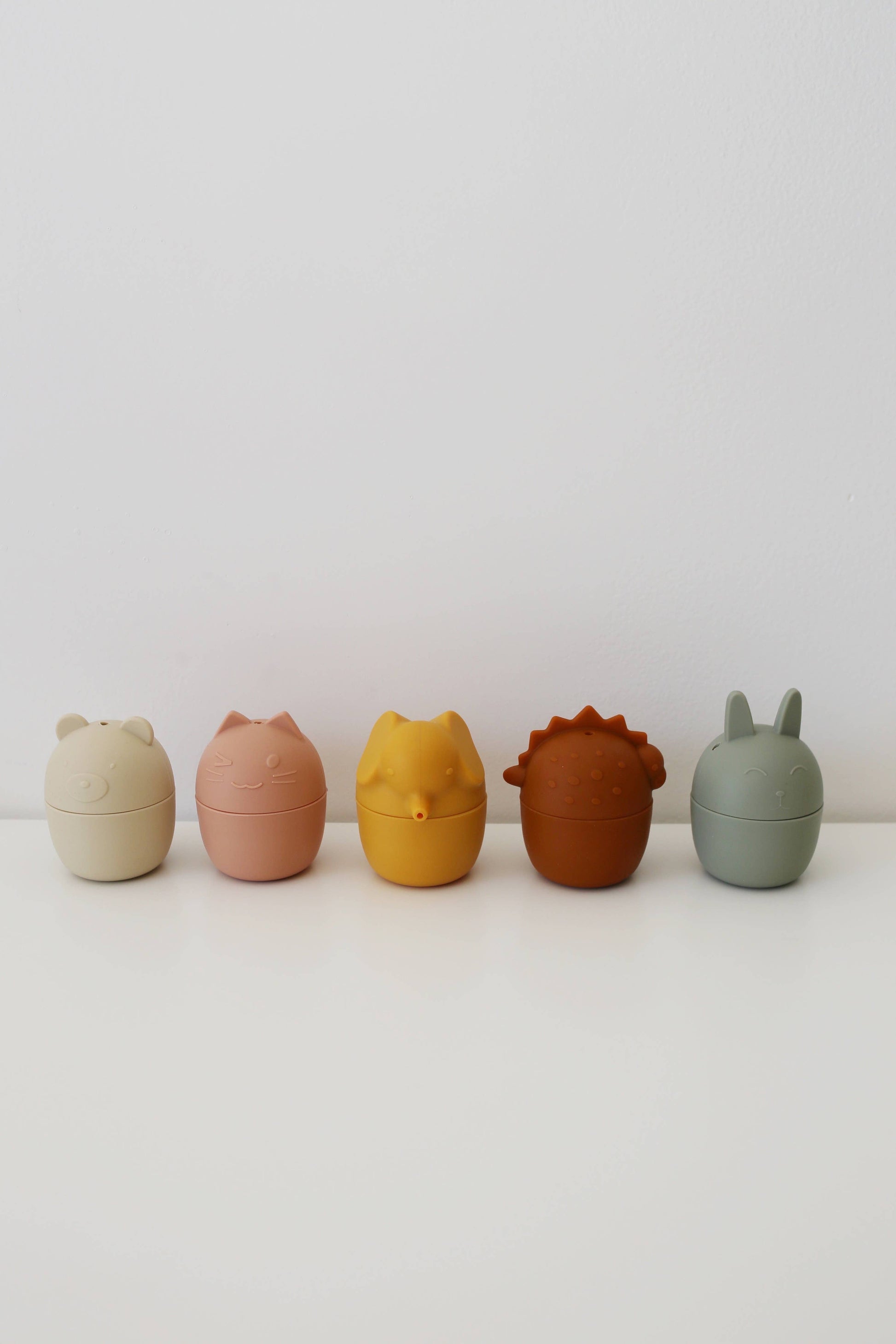 Marlowe & Co's Silicone animal bath toy set is modern and timeless and is designed to spark imaginative play and provide endless water fun! Our bath toy sets are thoughtfully designed and are available in classic neutral colors. They can be easily taken apart to mix and match colors, and for easy cleaning. This set is a perfect gift and is packaged in mesh bag and a giftable box. Features: ~ 100% food grade silicone ~ BPA Free, PVC free, Phthalate free, Lead free ~ CPSC tested to ensure compliance and safety ~ Can be taken apart for cleaning to prevent mold ~ Dishwasher safe ~ Ages 6 months + Our 10 piece bath toy set that includes five animals: a bear, elephant, dinosaur, cat, and rabbit, that is packaged in a mesh storage bag and a quality recyclable box for a timeless gift. Care Instructions: open the animals and hand wash and let air dry, or place in the top rack of the dishwasher. Wipe any remaining water marks with a towel.