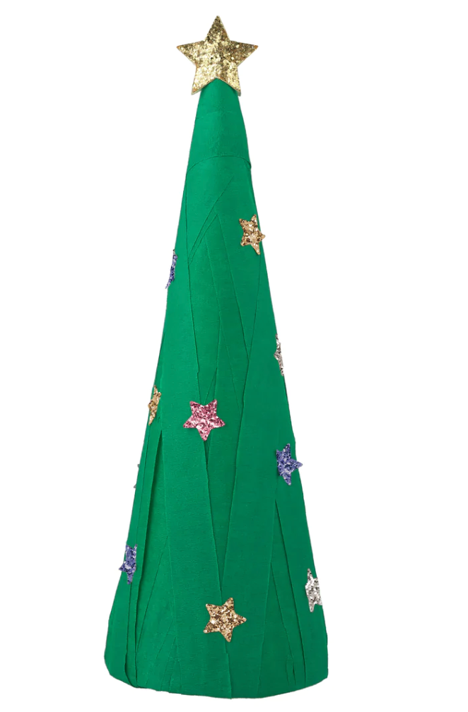- Green crepe paper covered with ECO glitter stars, and a star on top