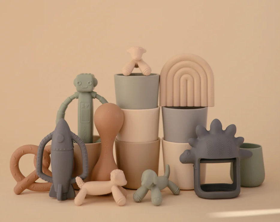 Shaped like a lovable animal friend and designed to soothe tender gums, our figurine teethers are both charming and functional. Made from non-toxic, food-grade silicone, these teethers are safe and gentle for baby's delicate gums. The playful design stimulates little imaginations and the compact size makes it easy for tiny hands to grasp, developing fine motor skills.