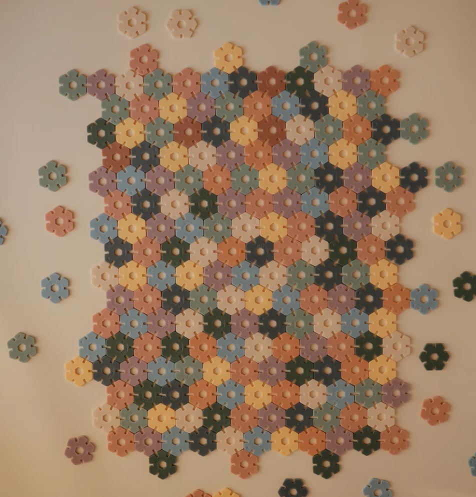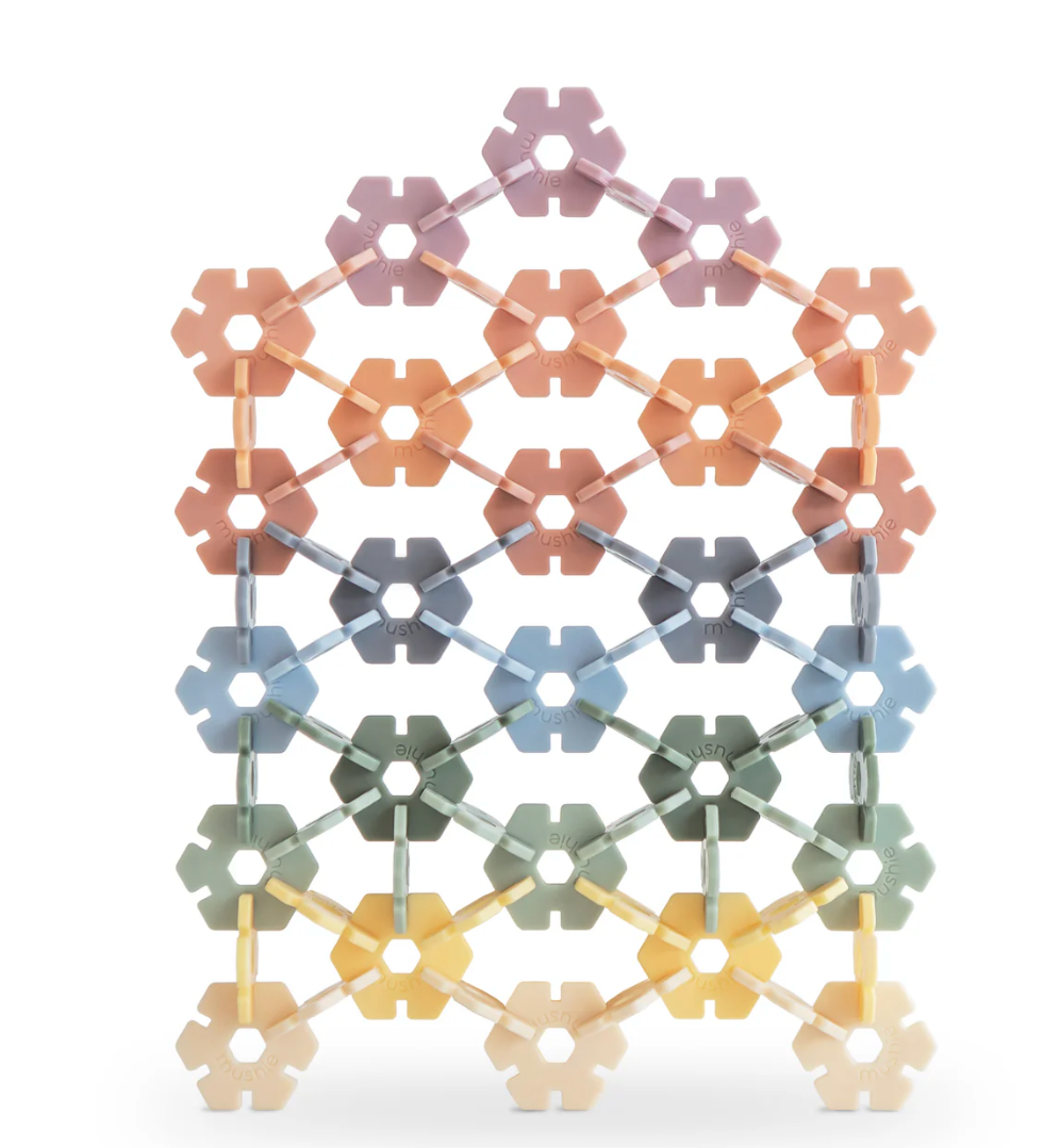 Give littles the tools to learn problem solving skills and develop spatial reasoning with a STEM toy designed to encourage creativity. Our open ended building toy set features 100 hexagon shaped discs that piece together with endless possibilities. Each time littles play, the soft colors blend to create beautiful and unique designs while the BPA-free plastic pieces interlock with ease.