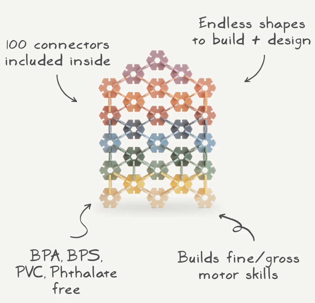 What's Included: 1 set of 100 pieces of HEX Connect Building Toy Set pieces