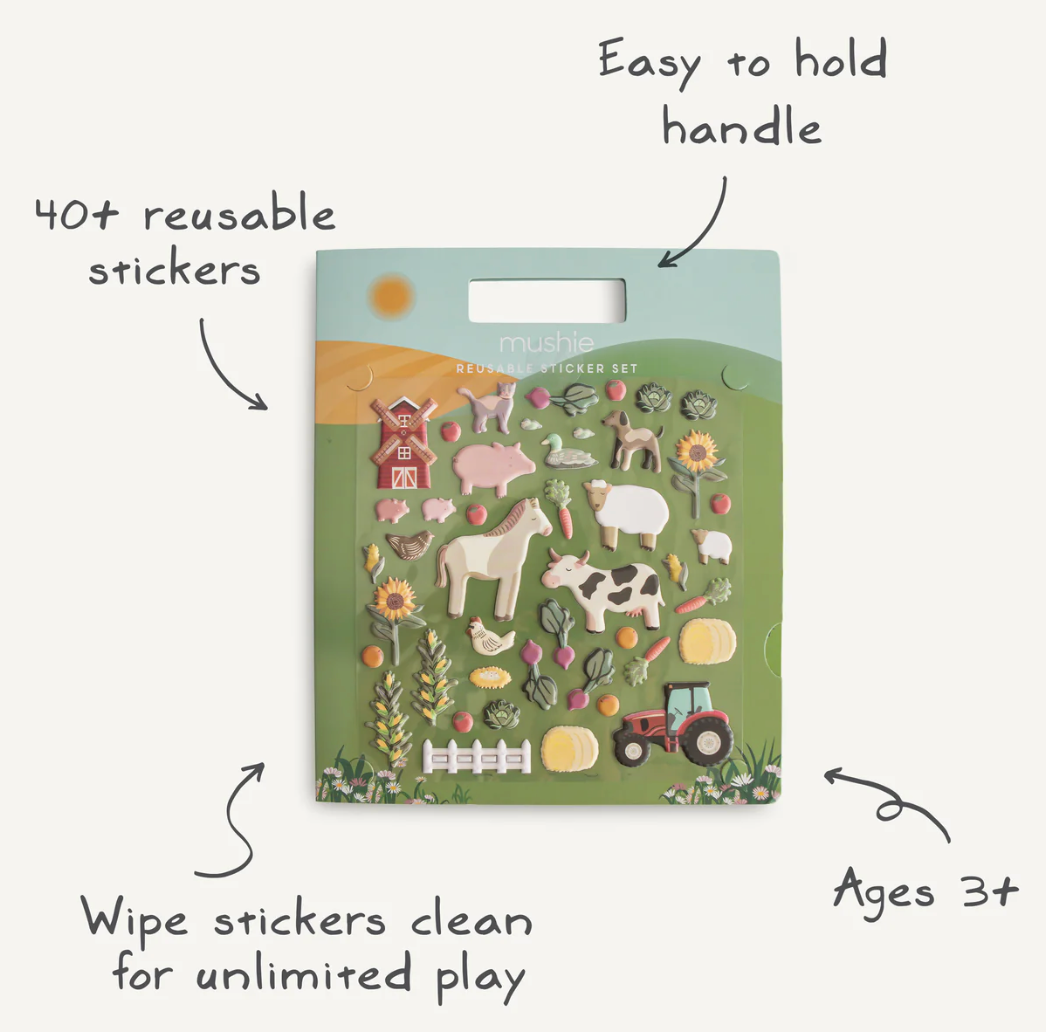 Set the stage for imaginative storytelling with a reusable sticker book ... With puffy stickers that can be used over and over again, kids will enjoy pretend play with a variety of colorful animal. The simple carrying handles let you take playtime anywhere with easy-to-hold cutouts at the top of the book. Watch littles act out countless scenarios as they move stickers around the book and explore.