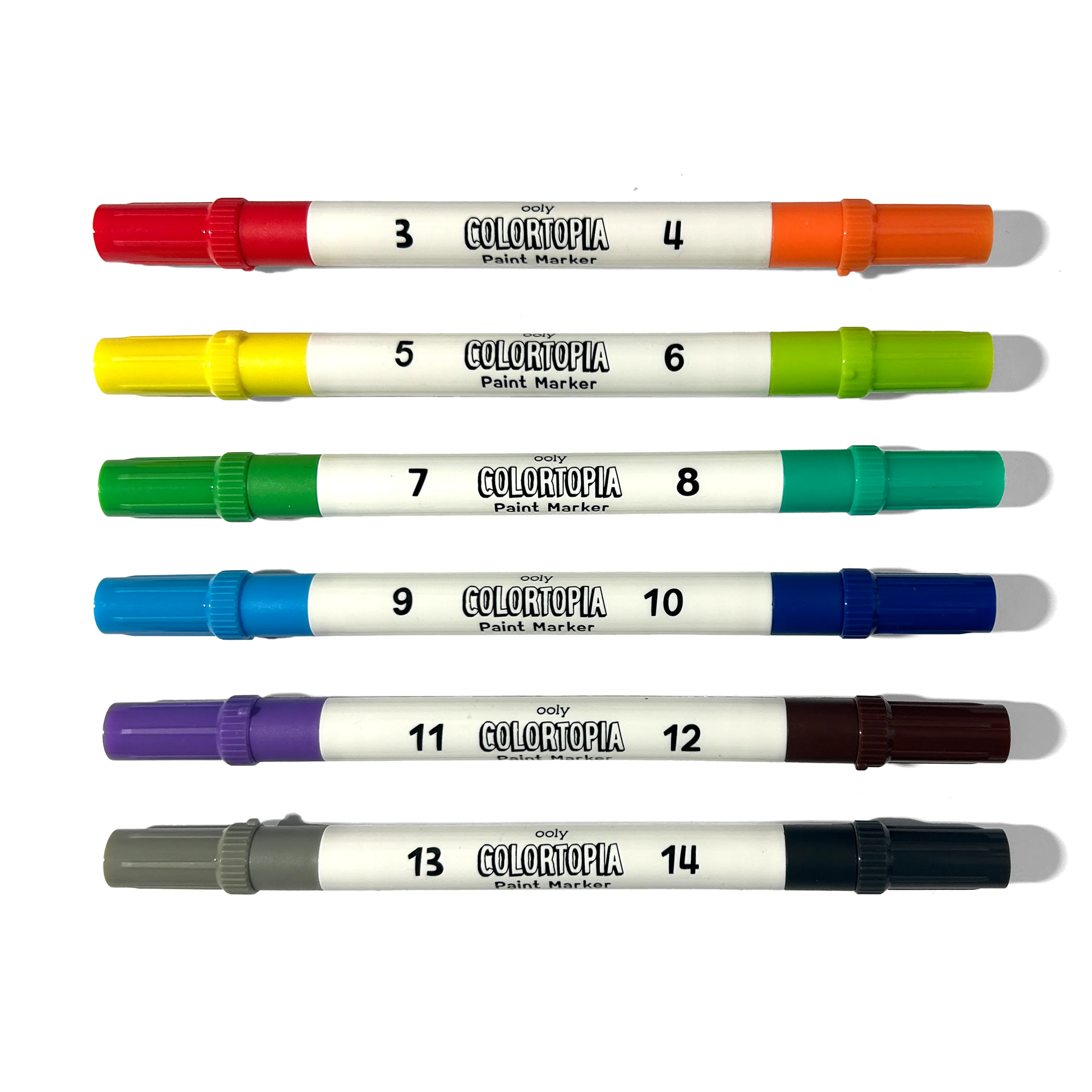 6 double-ended water-based paint markers are included (giving you 12 colors in all)