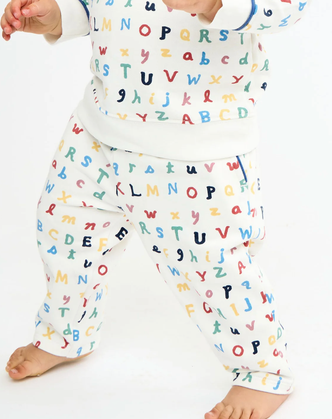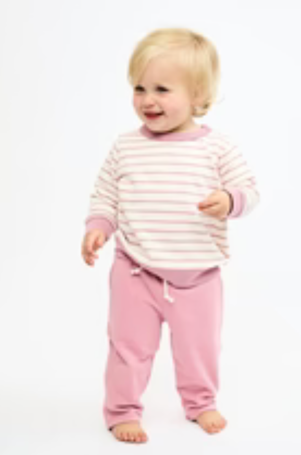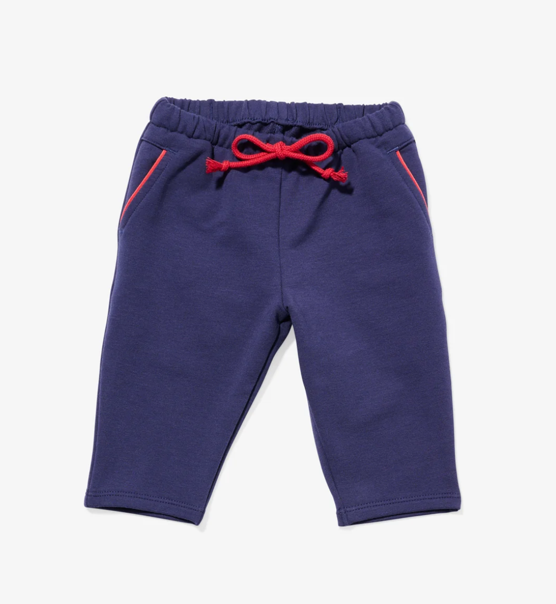 Our first ever jogger! Super cozy with contrast piping around the front pockets. Contrast waist drawcord for a Growable™ fit. Perfect to play in and stylish enough to be worn around town. French terry on the inside and jersey on the outside. Kids love wearing them.