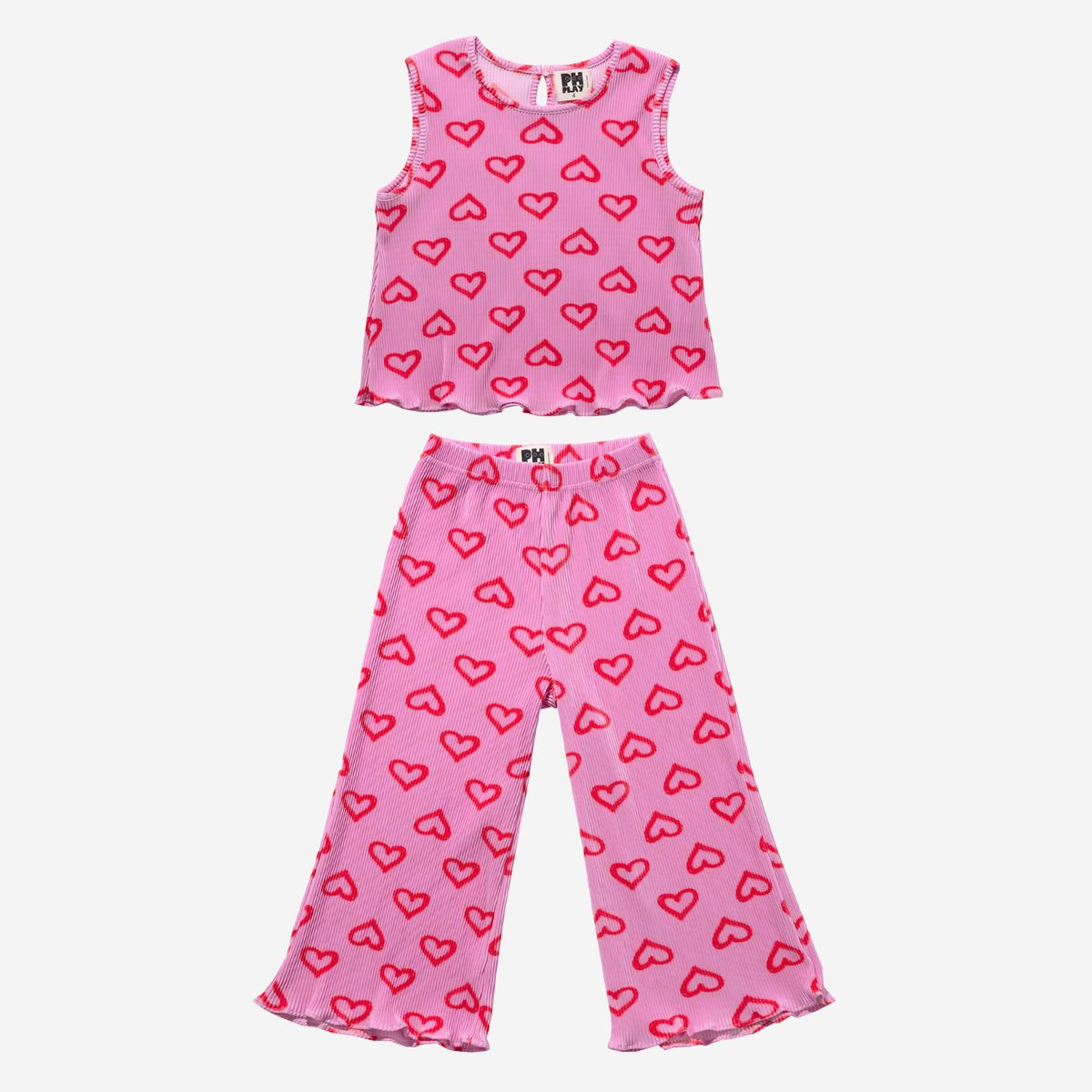 Flowy and fun pink heart set. Tank top and wide leg pants!