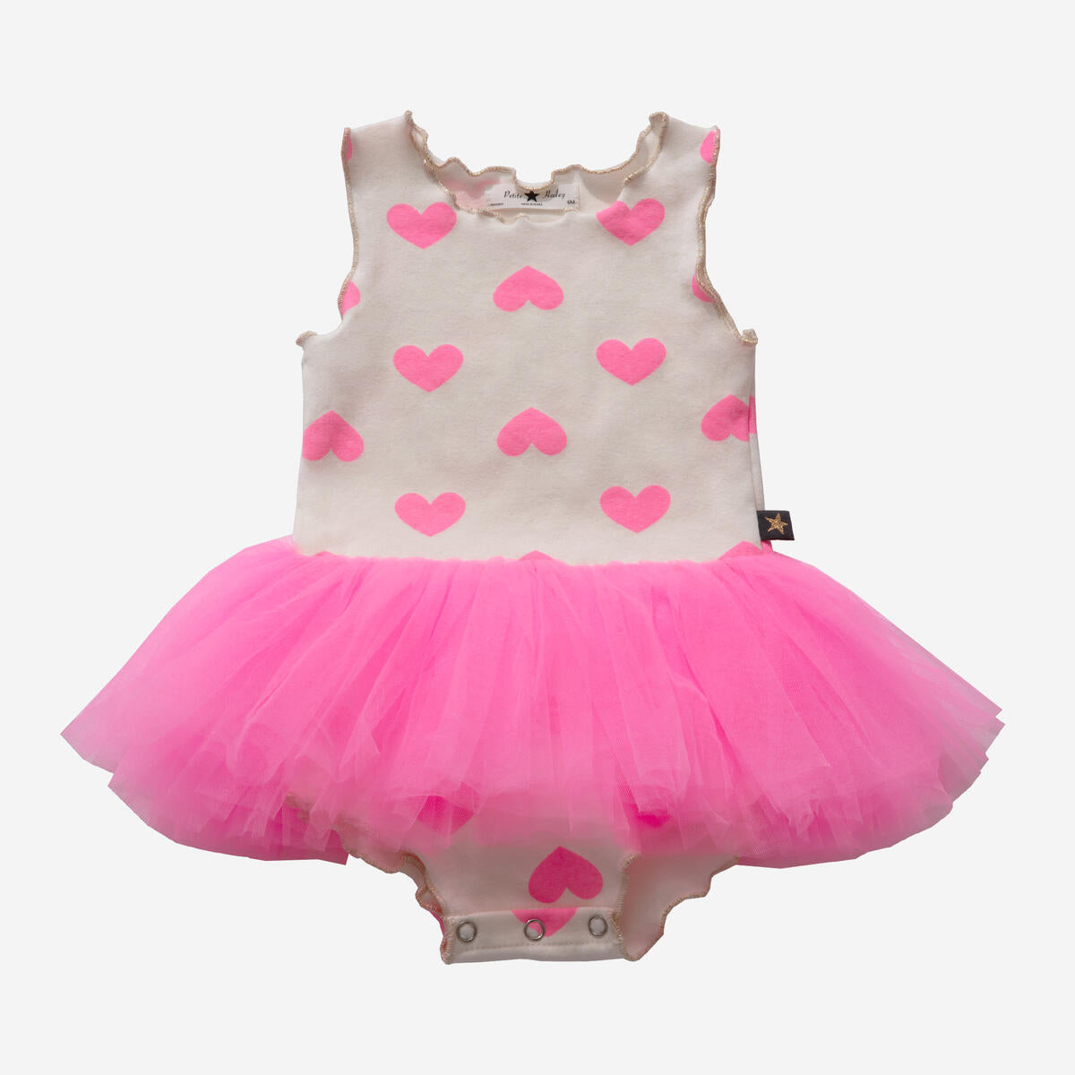Baby one piece with tutu. This comes in two different color ways! White with pink hearts or light pink with Purple Hearts!