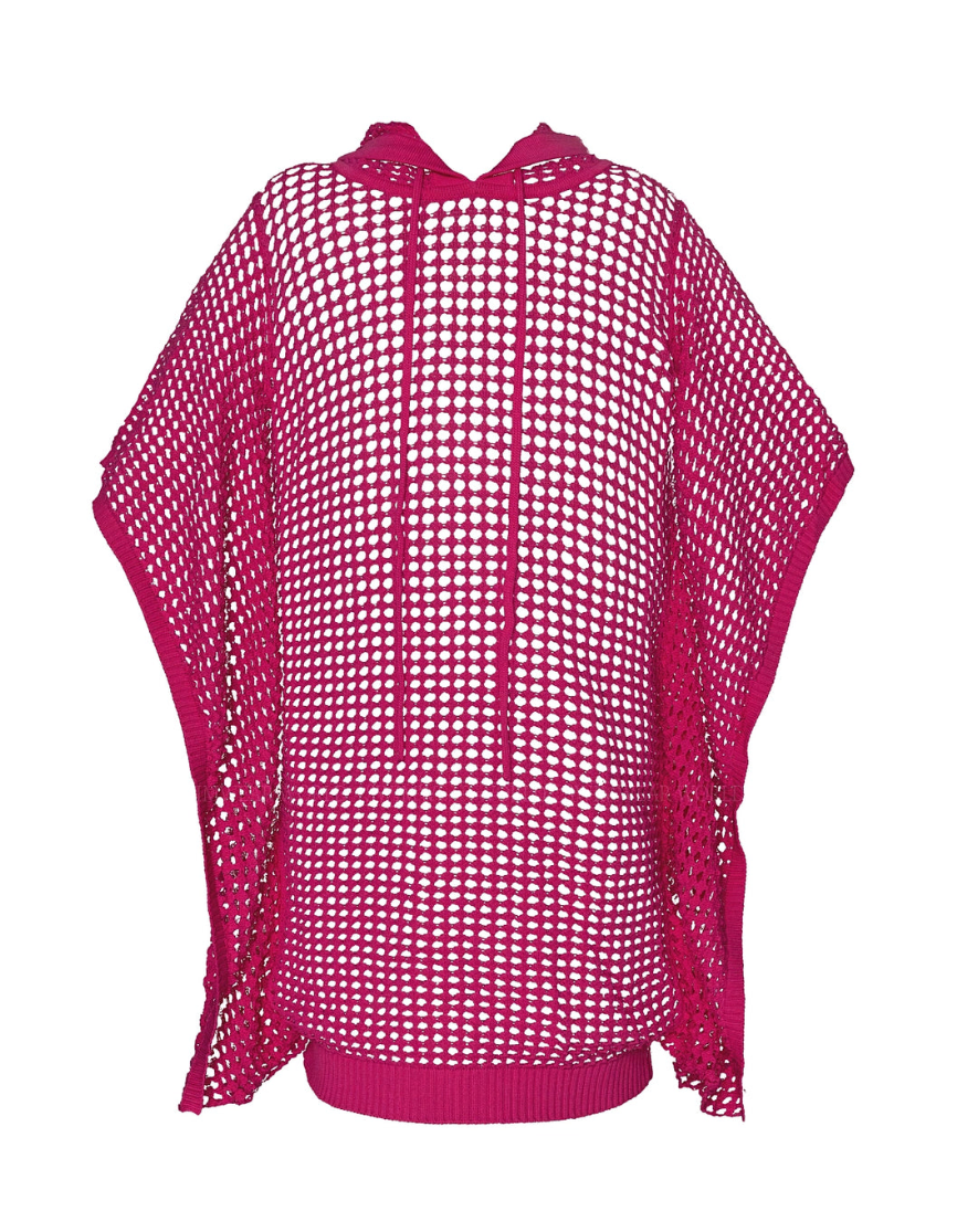 The Reagan Poncho for kids is a stylish, textured cover-up in a bold pink hue. Its loose, airy fit and vibrant design make it perfect for layering over swimwear, adding both comfort and a pop of color to any beach or poolside look.