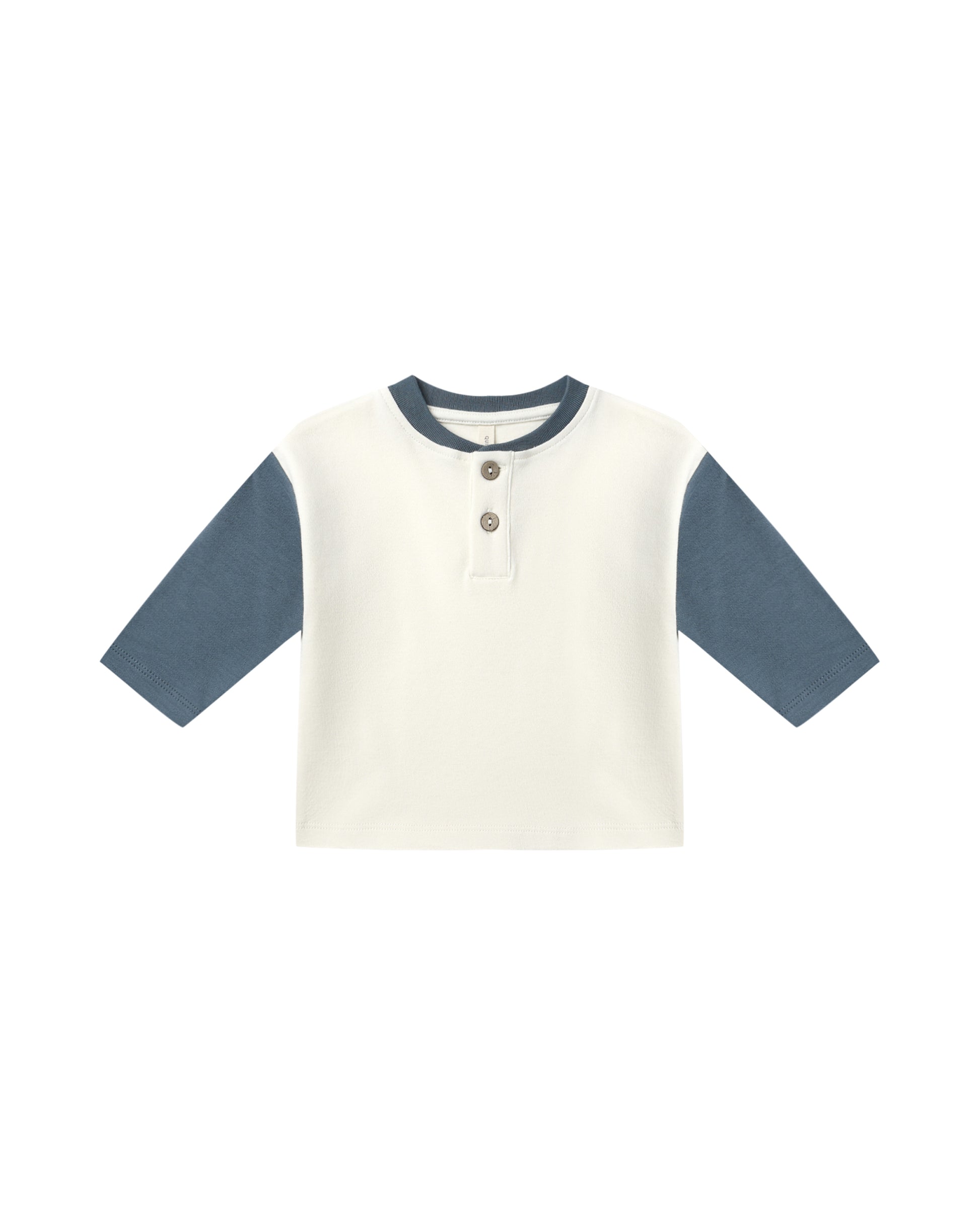 Quincy Mae Long Sleeve Henley Tee Ocean