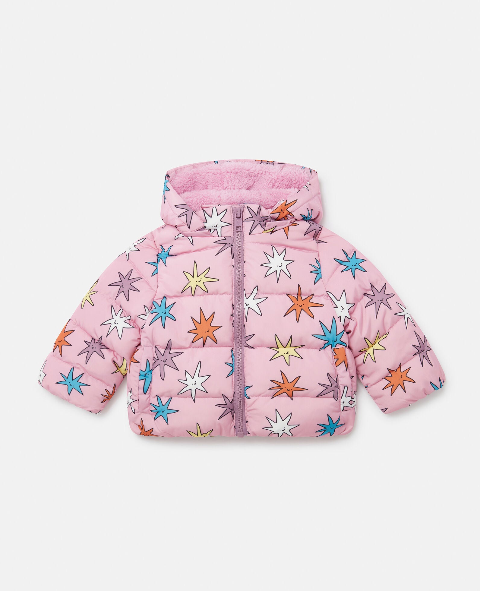Color: Pink multicolor - Bright star print - Hood - Long sleeves - Padded texture - Water resistant - Two pockets - Zipper fastening
