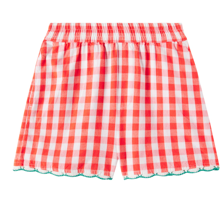 Upgrade your little one's summer wardrobe with these playful Stella McCartney Kids Crochet Trimmed Check Shorts. These red gingham shorts feature delicate crochet trim, adding a special touch to any outfit. Don't miss the matching shirt for a complete look!