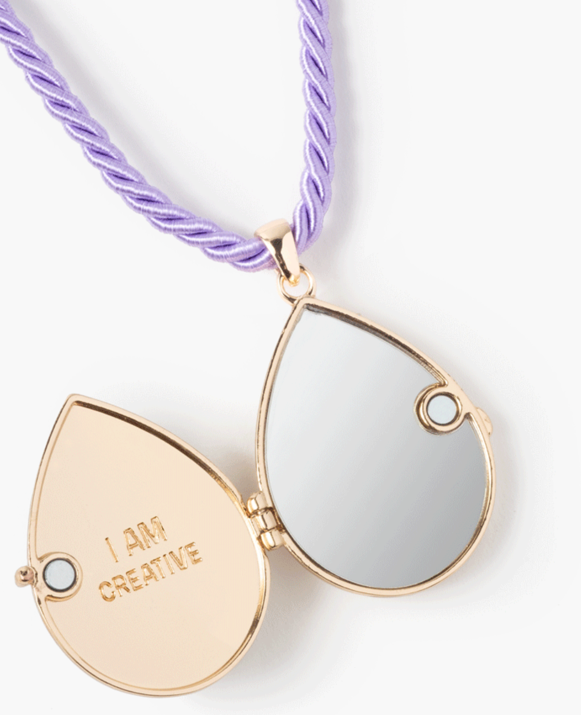 Ignite the spark of self-expression and confidence with our Disney Rapunzel Locket! Designed to inspire creativity in young hearts, this enchanting accessory features a vibrant purple adjustable rope cord and a dazzling gem pendant showcasing Rapunzel's radiant face. Opening to reveal a mirror and the empowering message: 'I Am Creative,' it encourages kids to embrace their unique abilities and express themselves fearlessly.