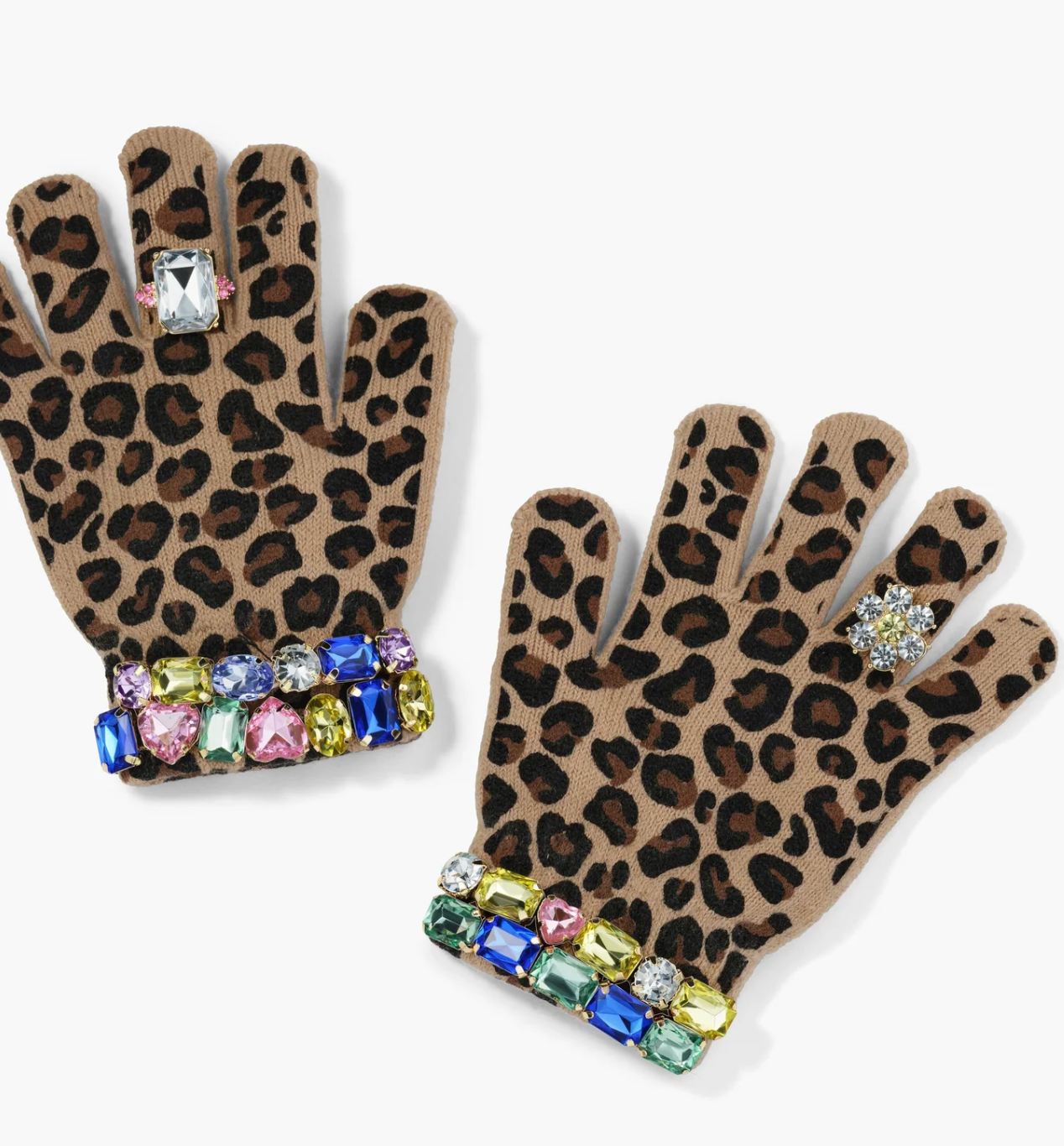 LEOPARD PRINT. LOTS OF JEWELS. SUPER COZY. Yep, our Jungle Jeweled Gloves have it all. Fancy gems that mimic the look of bracelets and rings make these winter must-haves POP and purr-fect for everyday use. Get your wild child on and head out into that winter jungle-land!