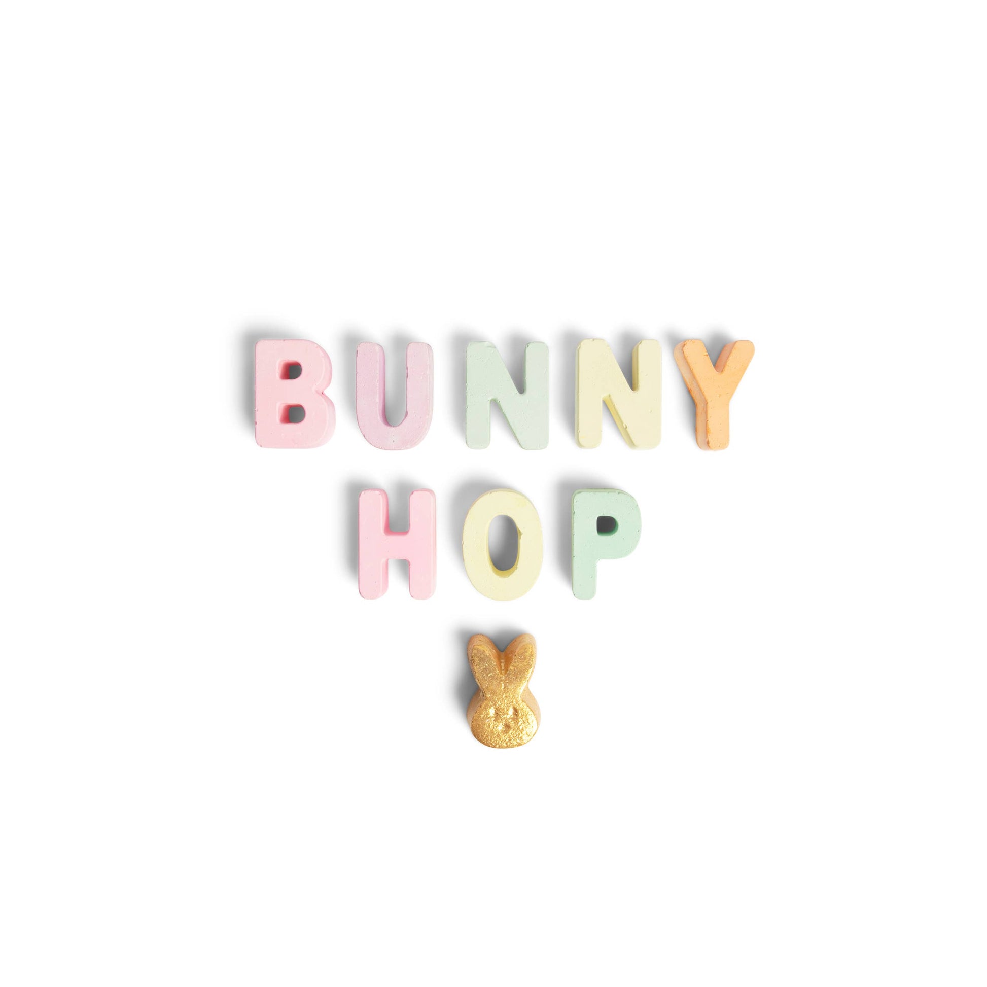 Each Bunny Hop retail unit includes: 8 Letters spelling the word "Bunny Hop" and 1 gold dipped fluffle, chalk colors will vary Each Flock of Fluffles retail unit includes: 8 fluffles (1 pink, 1 orange, 1 yellow, 1 green, 1 blue, 1 purple, 2 gold dipped, chalk color will vary) • Handmade sidewalk chalk • Each fluffle is 2" long, 1" wide • Letters approximately 1.5” length, 1.25” width • Eco-friendly, non-toxic, washable
